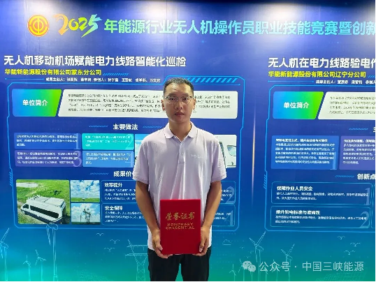 9月11日,2025年全國能源行業(yè)無人機操作員職業(yè)技能競賽在陜西省華陰市圓滿落幕。集團公司共選派3支隊伍6名選手參加競賽,其中,三峽能源安徽分公司楊廣海榮獲個人一等獎,楊廣海、三峽集團廣東分公司莊文軍組成的參賽隊伍榮獲團體三等獎。